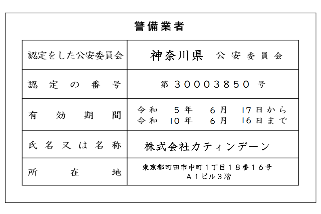 東京都公安員会認定第30003850号